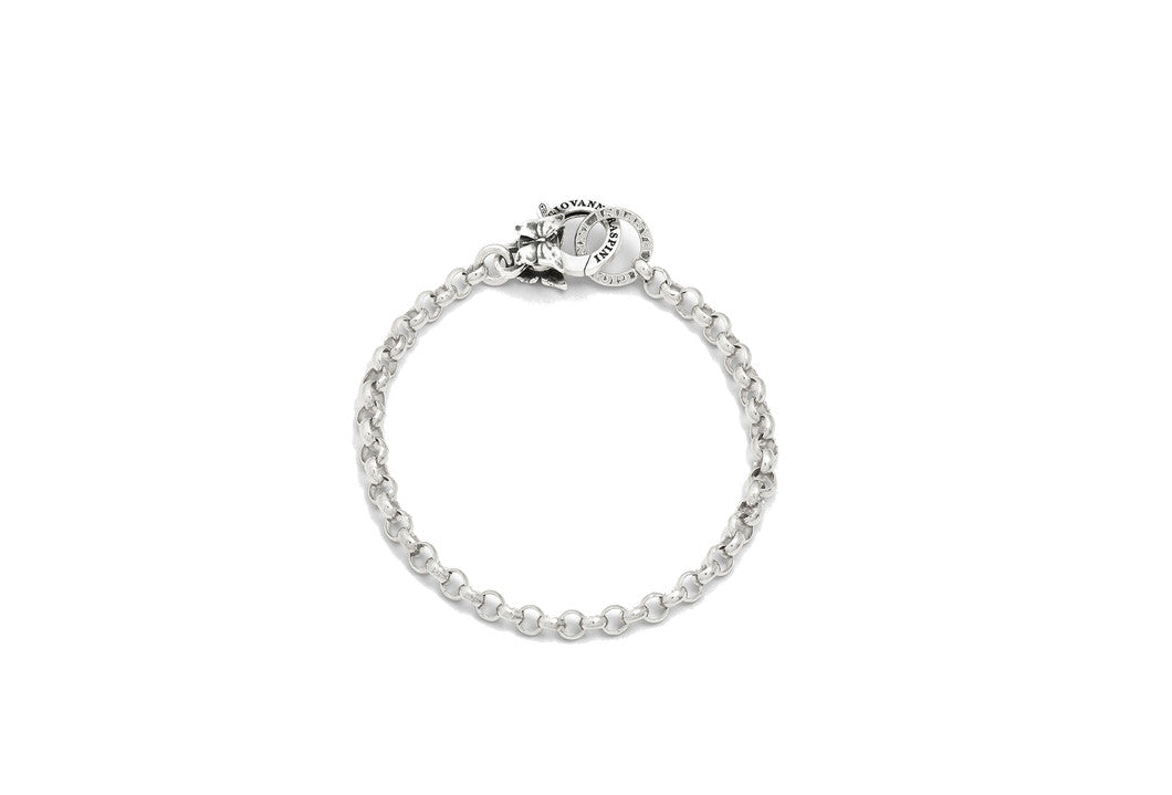 Un bracciale essenziale e raffinato, perfetto per accogliere i tuoi charms e creare una composizione elegante e personale. Realizzato con una pregiata catena rolò in Argento 925, questo gioiello si distingue per la chiusura con brisé logato, impreziosita da un delicato decoro a forma di farfalla.
