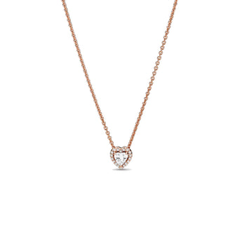 Attira ogni sguardo con questa collana con cuore scintillante. Rifinito a mano e realizzato in Pandora Rose (l'esclusiva lega metallica con placcatura in Oro rosa 14K), la collana si ispira agli elementi classici della collezione Pandora Timeless. Decorato da una pietra centrale in rilievo a forma di cuore circondata da una fila di pietre di zirconia cubica incolori, è completato dal monogramma con la O coronata Pandora che ne decora la chiusura. Regola la lunghezza della collana per adattarla al tuo stile e abbinala ad altri gioielli a forma di cuore per un look ispirato all’amore.