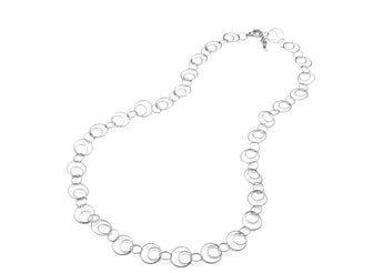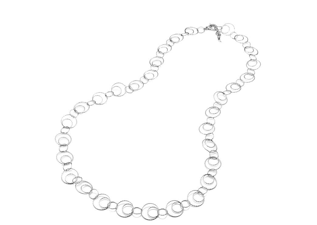 Collezione Catene – Legami infiniti di bellezza. Questa collana celebra l'essenza dell'argento trasformandolo in forme moderne e senza tempo. Le maglie si intrecciano con eleganza, dando vita a una texture raffinata che diventa essa stessa un gioiello scultoreo. Un connubio perfetto tra tradizione artigianale e stile contemporaneo.