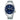 Il vetro è un minerale Hardlex e anche il fondello è provvisto di vetro che permette la visione del movimento in funzione. Quadrante di colore blu.