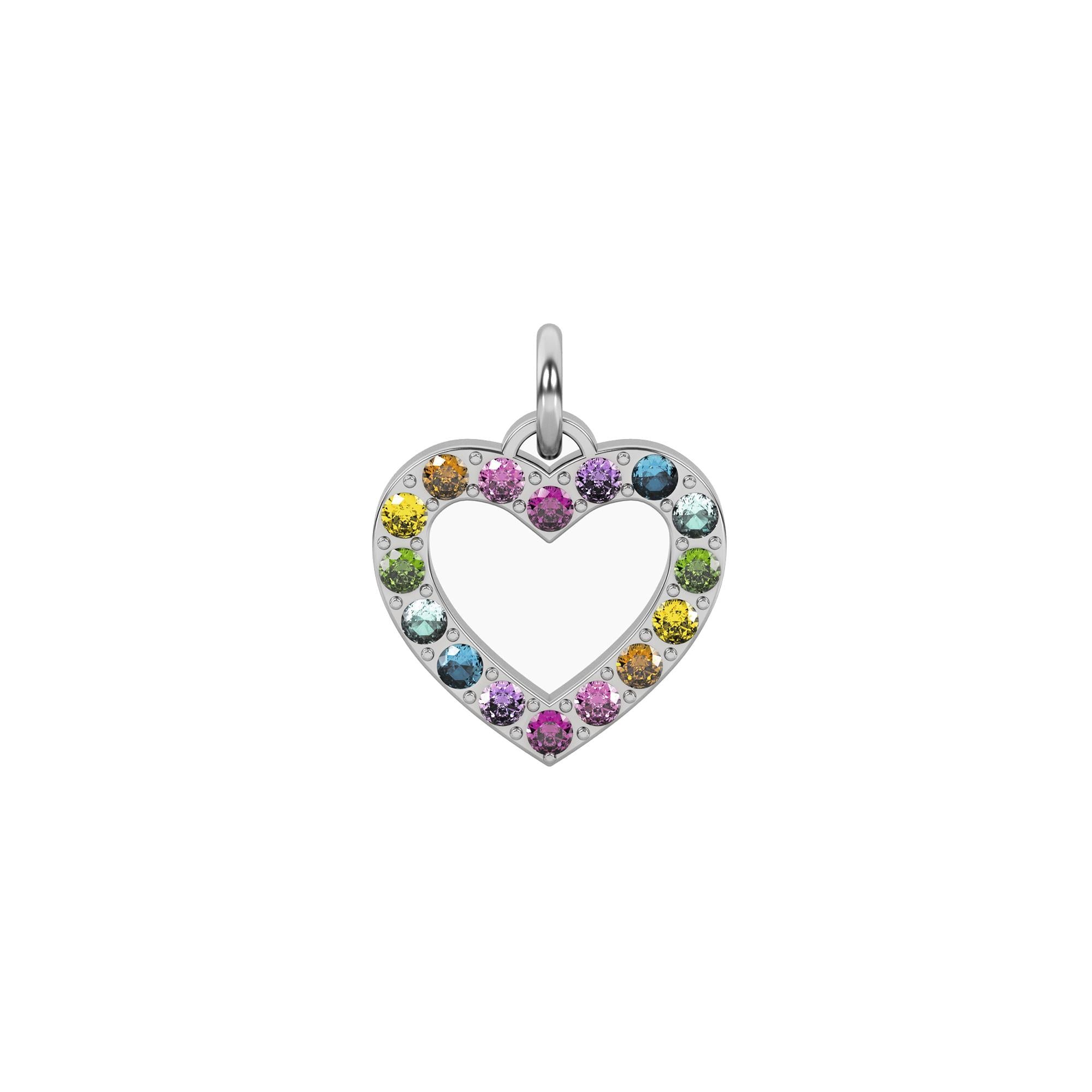 Ciondolo in acciaio a forma di cuore con cristalli multicolor.