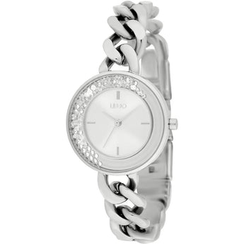 Esalta il tuo stile con l'orologio solo tempo da donna Liujo della collezione Dancing Chain. Con movimento miyota, resistenza all'acqua di 3 atm e cassa in acciaio inossidabile argento di 32 mm. Il quadrante argentato e i cristalli decorativi completano il design. Cinturino in acciaio inossidabile argento incluso. Referenza TLJ2238.