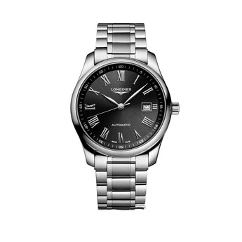 L'elegante Orologio Longines MASTER COLLECTION vanta una forma rotonda in acciaio inossidabile. Con un vetro zaffiro antigraffio e un fondello trasparente, è impermeabile fino a 3 bar. Il quadrante nero presenta numeri romani e lancette argentate lucide. Dotato di un movimento automatico L888 con riserva di carica di 72 ore, è un accessorio affidabile per tenere traccia del tempo con stile.
