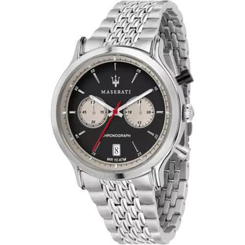 OROLOGIO MASERATI LEGEND - R8873638001 - Genere: Uomo, Materiale e finitura cassa: Acciaio, Misura cassa: 48,4x42mm, Spessore cassa: 9,7, Vetro: Vetro minerale, Materiale cinturino: Acciaio, Colore cinturino: Silver, Chiusura: Box buckle with pushers, Water resistant: 10 atm, Garanzia: Ufficiale 2 anni Maserati, Confezione: Originale Maserati