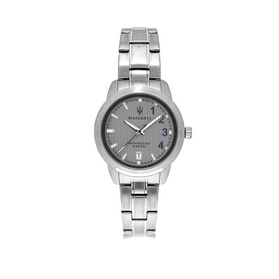 OROLOGIO MASERATI ROYALE - R8853137503 - Genere: Donna, Materiale e finitura cassa: Acciaio, Misura cassa: 45x38mm, Spessore cassa: 7,7, Finitura cassa: Acciaio, Colore cassa: silver, Vetro: Vetro minerale, Materiale cinturino: Acciaio, Colore cinturino: Silver, Chiusura: Box buckle with pushers, Movimento: Quarzo, Water resistant: 5 atm, Garanzia: Ufficiale 2 anni Maserati, Confezione: Originale Maserati