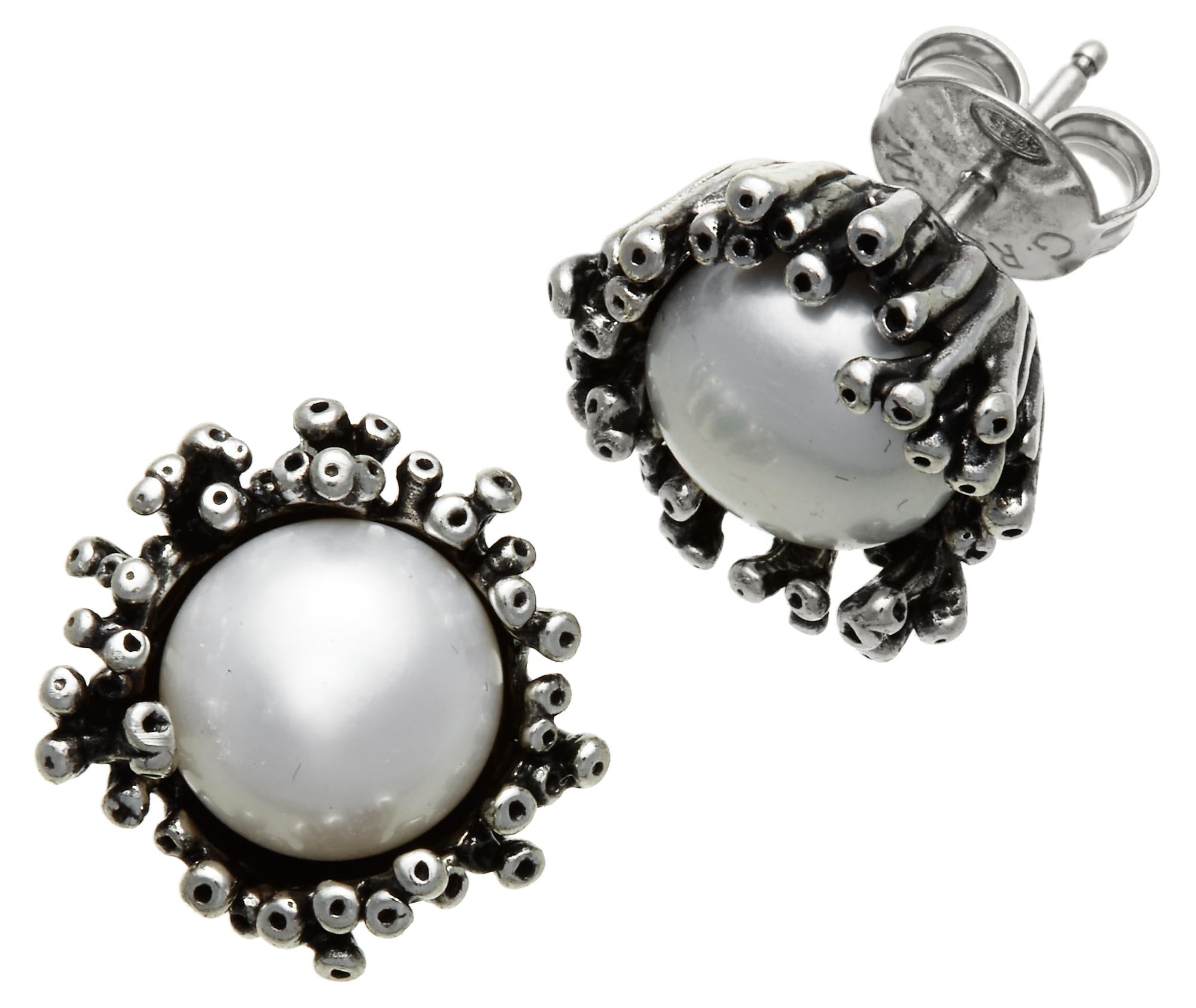 Orecchini Bottone Anemone in Argento 925 e perle naturali.