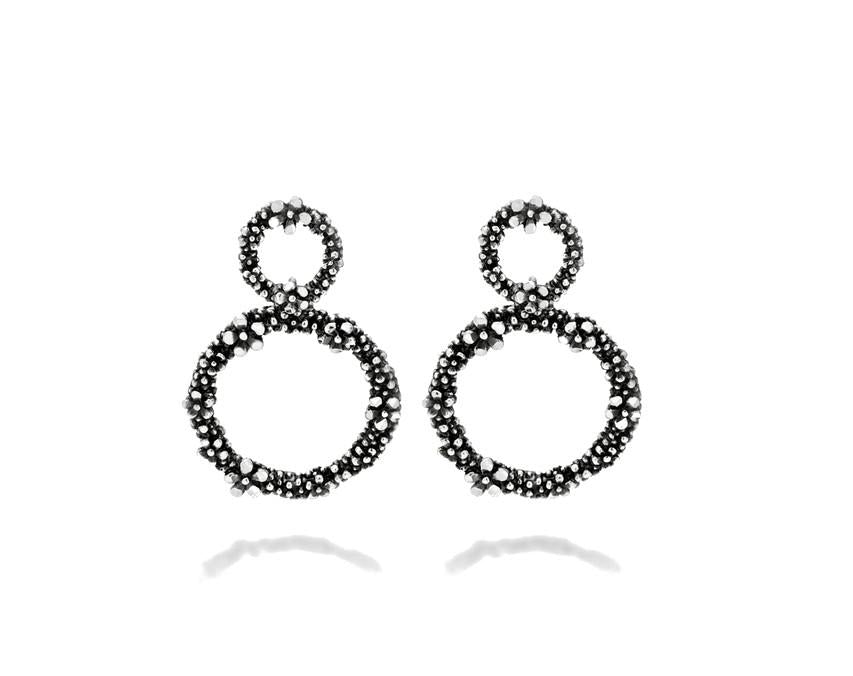 Orecchini Giovanni Raspini, realizzati in argento 925 con lavorazione brunita. L'altezza è 4,5 cm. La chiusura è a farfallina.