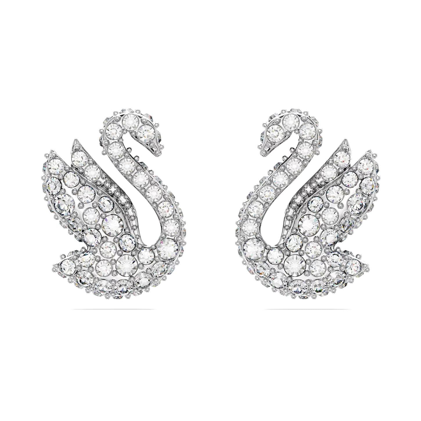 Orecchini a lobo Swarovski Iconic Swan Cigno, Bianchi, Placcato rodio