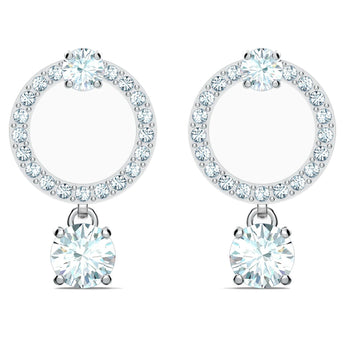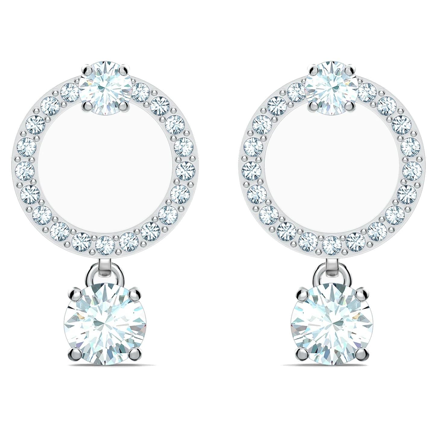 Questo paio di orecchini a buco Swarovski è semplice ma sempre brillante. Una pietra bianca rotonda ricade da un piccolo cerchio, splendidamente decorato con scintillante pavé. Gli elementi pendenti danzano ad ogni movimento del tuo capo, riflettendo la luce in modi sempre nuovi e assolutamente brillanti. Questi accattivanti orecchini aggiungono un tocco di inimitabile scintillio agli outfit da tutti i giorni.
