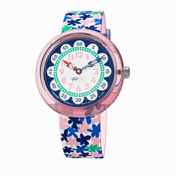 Ecco qua l'orologio ufficiale delle passeggiate nel parco e delle ghirlande di margherite! Questo orologio svizzero per bambine è pieno di fiori, con splendidi boccioli che spuntano sul cinturino e sul quadrante. Le aspiranti principesse di tutto il mondo impareranno a leggere l'ora in modo impagabilmente "British".