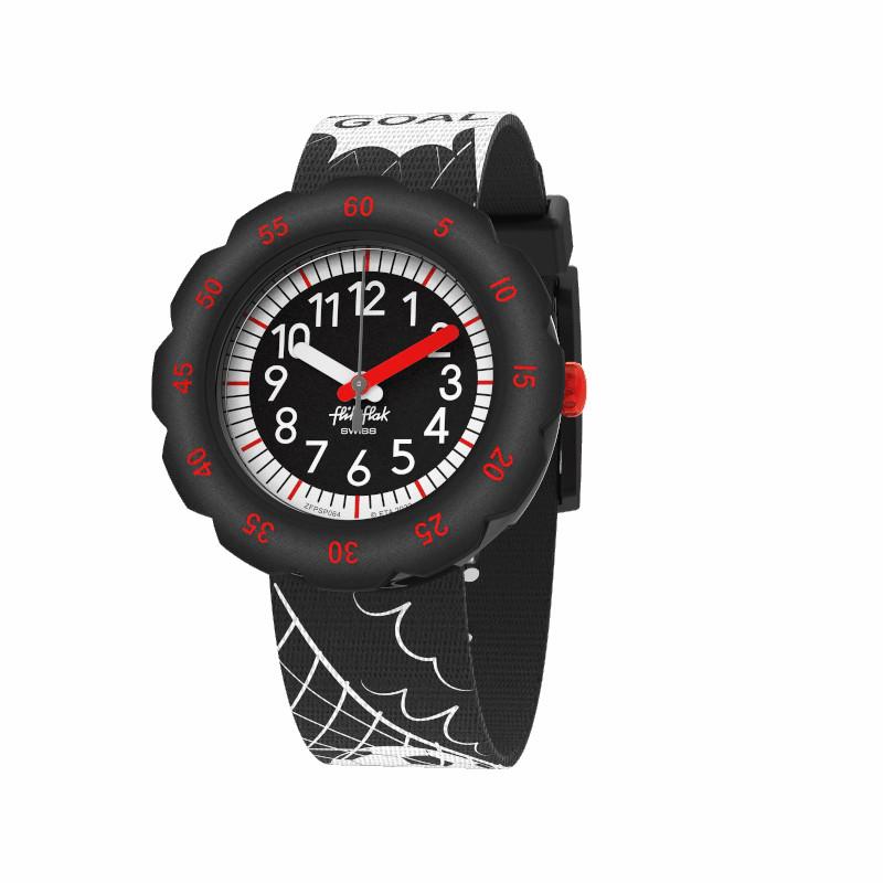 Orologio Flik Flak da bambini, mecanismo al quarzo Swiss Made con funzione di solo tempo, cinturino in Pet riciclato, cassa in plastica di origine biologica.