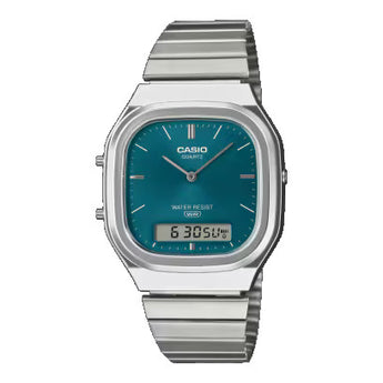 Con il suo doppio display analogico-digitale, l'AQ-240E unisce il fascino retrò a un'eleganza attuale. Il quadrante leggermente rettangolare, incorniciato da una cassa dalle linee morbide e dalle delicate curve metalliche, esprime uno stile sobrio e raffinato che richiama i grandi classici della tradizione orologiera.