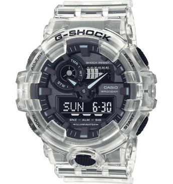Orologio Casio G-Shock, referenza GA-700SKE-7AER, cassa e bracciale in resina trasparente, meccanismo al quarzo multifunzione.