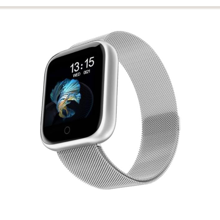 Cassa Alloy - Schermo LCD - Fondello plastica con sensori - Caratteristiche connessione bluetooth, ricaricabile tramite USB - Batteria durata in standby 30 giorni, uso normale 10-15 giorni- Cinturino silicone/maglia milano - Water Resistant IP67 - Compatibilità Android 4.4/ Apple IOS 8.0 - Protezione per schermo in vetro sottile - Funzioni Orologio: Cambio sfondo schermo, Cronografo, Accensione schermo tramite rotazione del polso, Luminosità schermo, Impostazione sveglia, Foto personalizzate, Mo itor a pulsante e Resistente all'acqua IP67 - Funzioni Benessere: Controllo del sonno, Test cardio programmabile, Cardio frequenza, Ossigeno(02) e Pressione sanguinea - Funzioni Sport: Contapassi distanza, Consumo calorie, Meteo, Tempo (BPM/CAL/TEMPO) Sport: Camminata, Corsa, Alpinismo e Bici - Funzioni cellulare: Controllo della musica, Notifica messaggi, Notifica chiamate, anti smarrimento smartphone, controllo remoto camera, Trova orologio