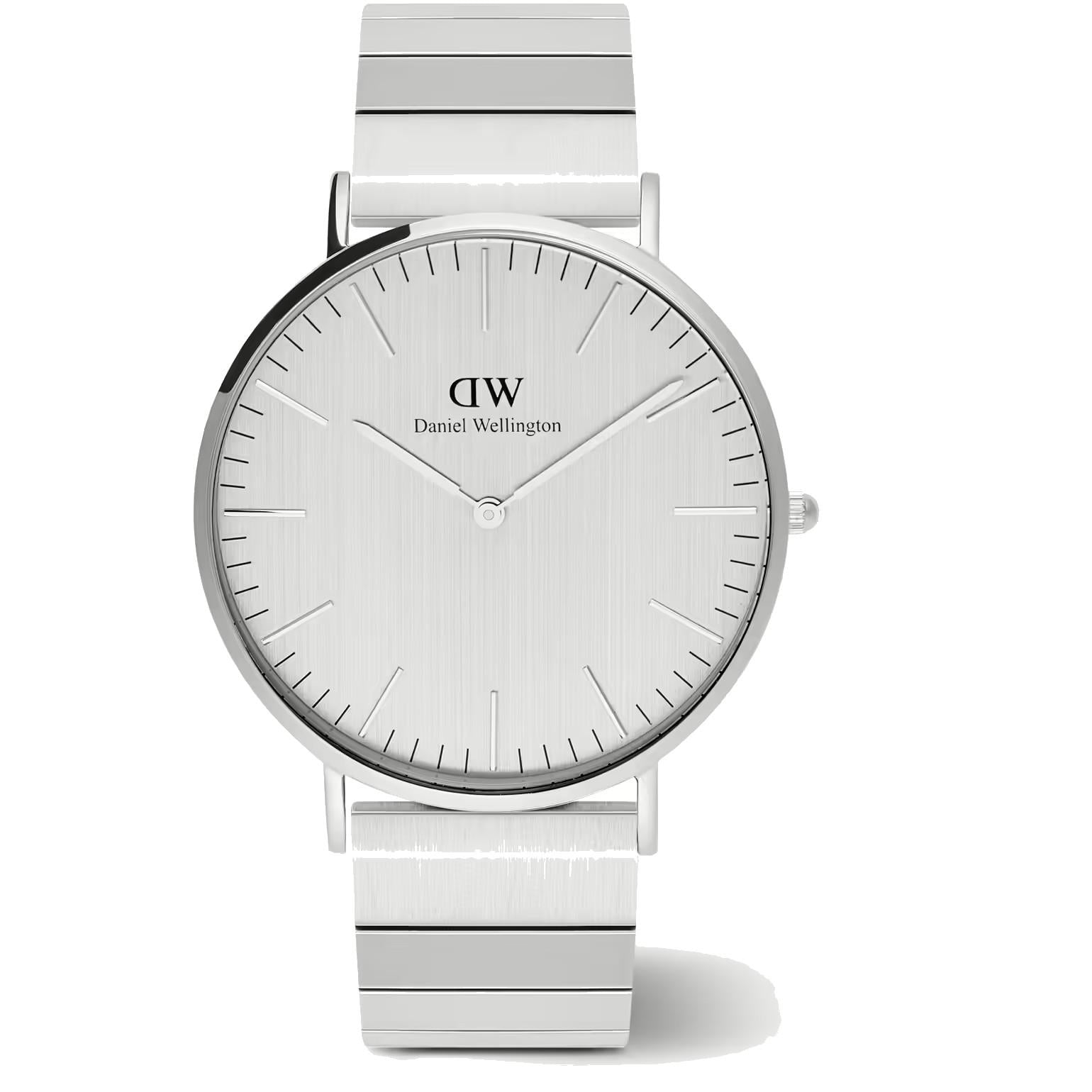 L'orologio da uomo di Daniel Wellington della collezione Classic è un elegante e sofisticato orologio in acciaio inox con cassa di 40mm e quadrante bianco. Il cinturino argentato, con larghezza anse di 20mm, garantisce un look raffinato e resistente. Con resistenza all'acqua fino a 3 ATM, è l'accessorio perfetto per ogni occasione.