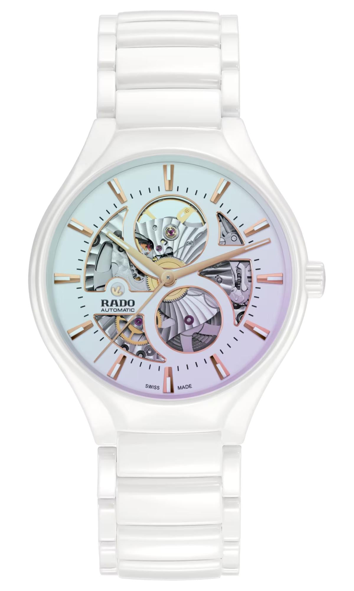 Rado True Round Open Heart Limited Edition è un orologio di design con movimento a vista che svela i complessi meccanismi del calibro automatico Rado R734. Il cristallo zaffiro iridescente lo protegge e i suoi colori cambiano in modo accattivante. Grazie alla spirale antimagnetica Nivachron™, offre una riserva di carica di 80 ore.