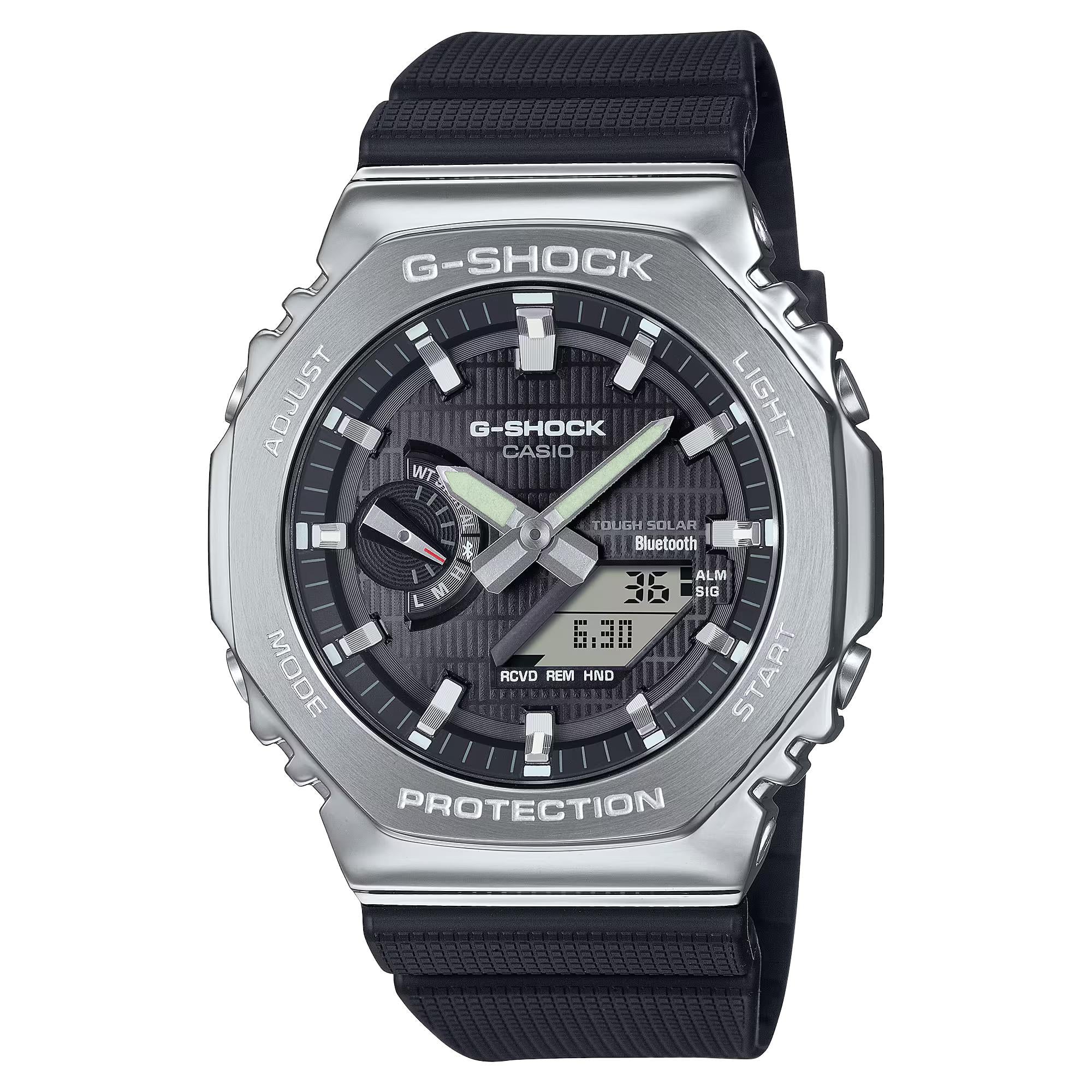 Con il GBM-2100, l'innovativo orologio dalla cassa ottagonale, potrai connetterti al tuo smartphone tramite Bluetooth® e caricare la batteria con energia solare. Scegli tra il quadrante nero, blu o verde con cinturino in resina ecosostenibile. Versatile e resistente per accompagnarti in ogni occasione, dal lavoro al tempo libero.