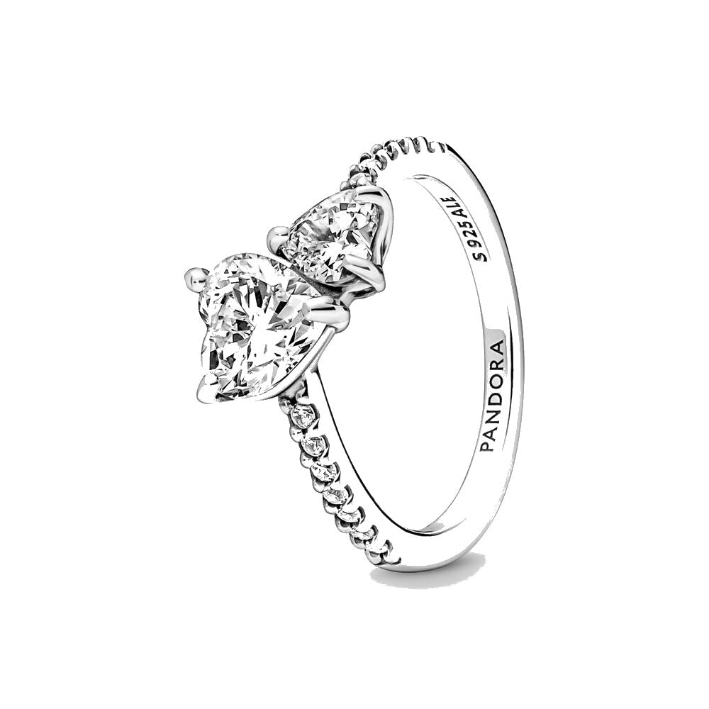 L'anello Unione di Cuori presenta due pietre di zirconia cubica incolori