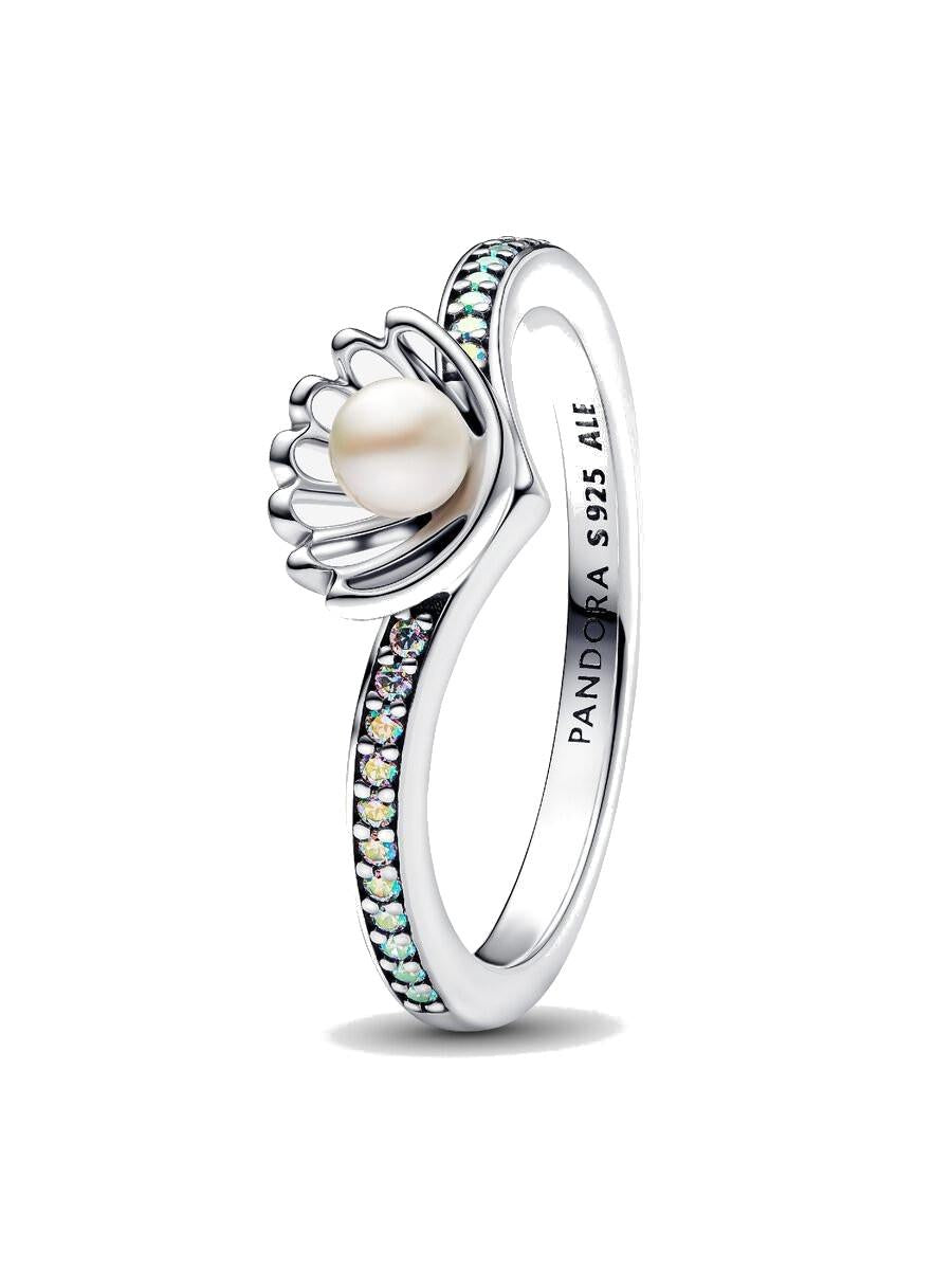 Caratterizzato da un motivo openwork a forma di conchiglia e decorato da una perla coltivata d'acqua dolce trattata, questo anello ispirato alle Principesse Disney è dedicato ad Ariel, l'amata protagonista de La Sirenetta.