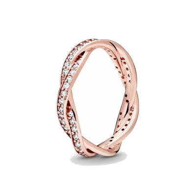 Anello in Pandora Rose, esclusiva lega metallica ricoperta in oro 14Kt. e Cubic Zirconia. Anello con due file di cubic zirconia bianca intrecciate. Bellissimo da solo o da abbinare ad altri anelli Pandora per creare composizioni originali ed uniche.