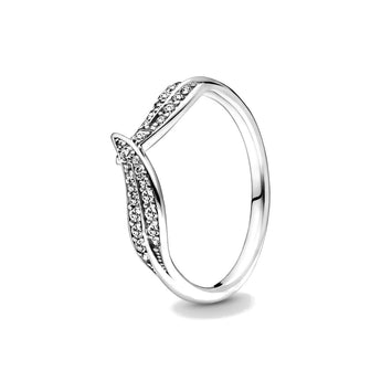 Anello Foglie scintillante. Rifinito a mano e realizzato in Argento Sterling 925, l’anello presenta due foglie che si fronteggiano, decorate da file di pietre di zirconia cubica incolori con taglio brillante.