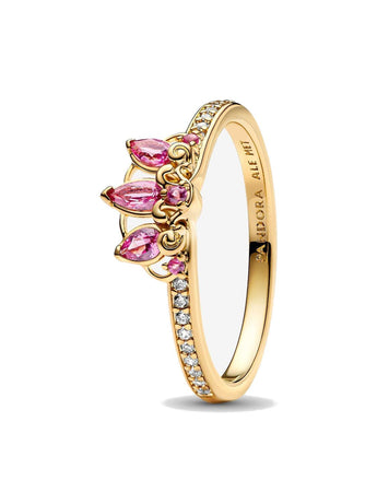 Ispirato alla Principessa Disney Rapunzel, questo anello a forma di tiara presenta luminose pietre con forma a pera di colore viola chiaro e dettagli ondulati.