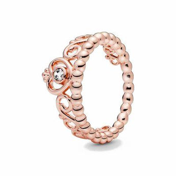 Anello in Esclusiva lega metallica ricoperta in oro 14Kt. e Cubic Zirconia. Da Donna della collezione Purely. Anello di colore oro rosa a forma di tiara, decorato a palline, al centro presenta un motivo a cuore traforato rifinito con un cubic zirconia bianco.
