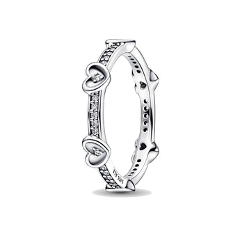 Rifinito a mano e realizzato in Argento Sterling 925, il nuovo anello Cuori Splendenti è caratterizzato da una fila di cuori in rilievo, ognuno decorato da una pietra di zirconia cubica incolore con taglio brillante rotondo e collegato da un pavé scintillante.
