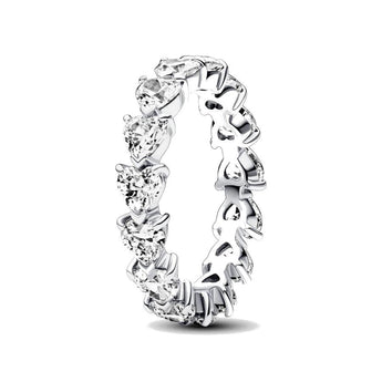 Mostra il tuo amore con l' Anello Fascia Cuori in Argento Sterling 925. Con 15 pietre di zirconia cubica incolore incastonate nella fascia, questo anello è un simbolo di amore eterno. Combinalo con altri anelli della collezione Timeless per un look luminoso.