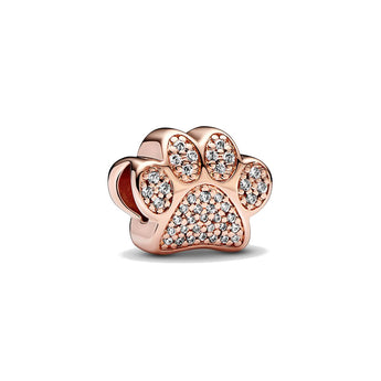 Charm a forma di zampa. Questo splendido tributo al tuo amico peloso è rifinito a mano, è realizzato con placcatura in oro rosa 14k ed è decorato da una serie di pietre scintillanti che formano il cuscinetto della zampa.