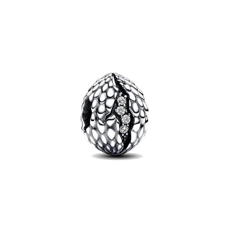 Esprimi la tua lealtà al reame di Westeros con il charm Il trono di spade, Uovo di drago Pandora. Realizzato in argento sterling 925 e decorato con una pietra zirconia cubica trasparente per un tocco accattivante. Compatibile con Pandora Moments, questo charm è perfetto per una collezione di gioielli da sogno. Dimensioni: 9,9 mm di profondità, 12,1 mm di altezza, 9,6 mm di larghezza.