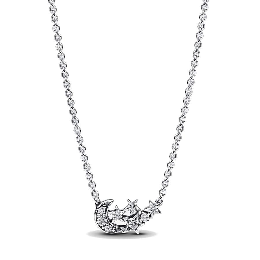 Collana Luna Crescente e Stelle, realizzata in Argento Sterling 925, è composta da una Pietra Zirconia cubica di colore Trasparente e ha come temi Natura e Simbolo dell'Universo. La collana misura 2,3mm di profondità, 7mm di altezza e 13,5mm di larghezza. Questa splendida combinazione di simboli e pietre renderà il tuo look ricercato ed elegante.