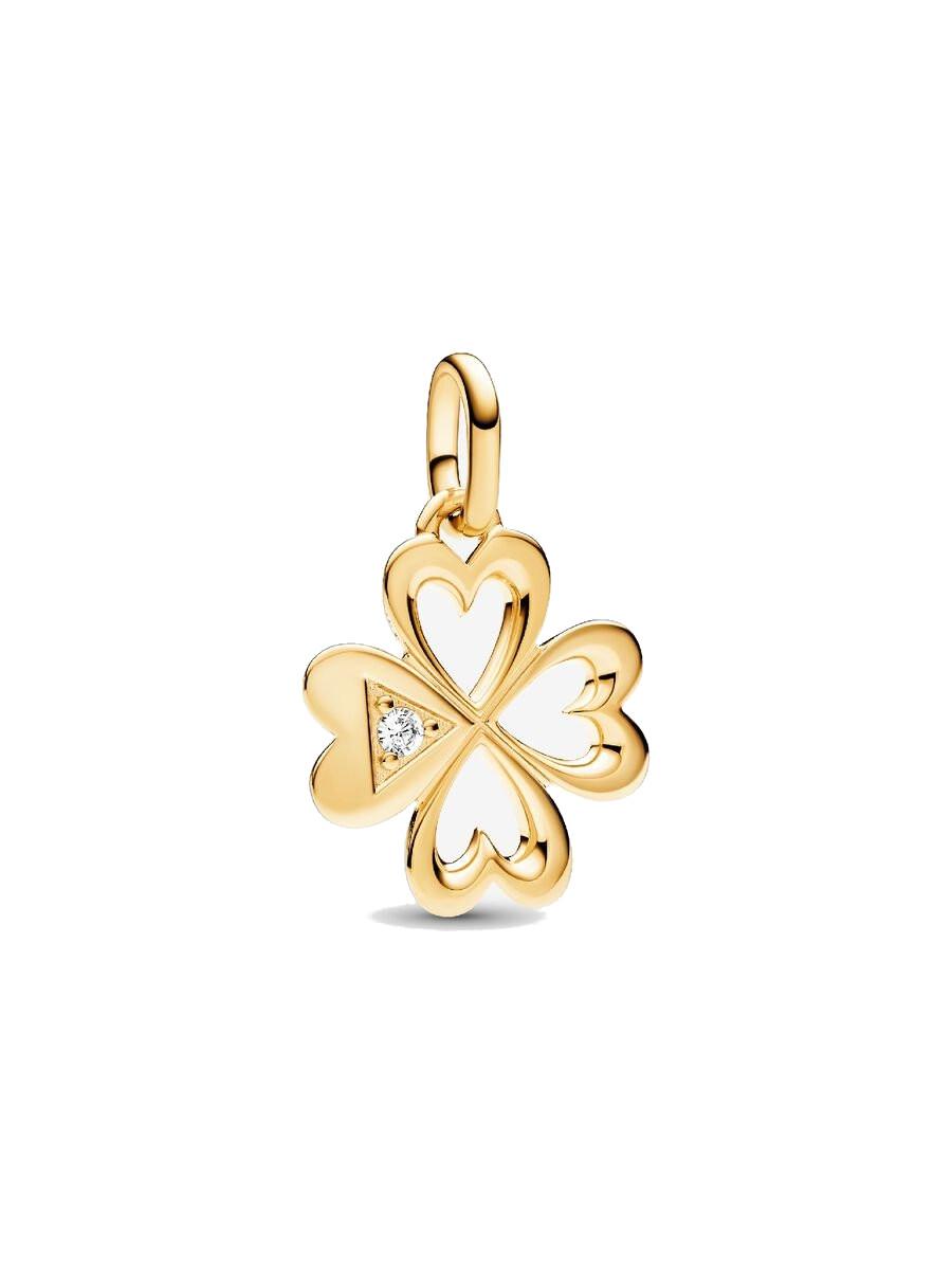 Charm Medallion Quadrifoglio Pandora ME. Caratterizzato da quattro foglie a forma di cuore, questo medallion nell'esclusiva lega metallica placcata oro 14k ha due lati distinti....