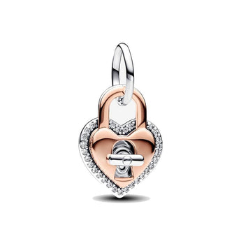 Esalta il tuo stile con il Charm Pandora Moments, compatibile con la collezione Pandora. Con una pietra di zirconia cubica trasparente, il tema amore si esprime in modo elegante e raffinato. Questo charm è realizzato in esclusiva lega metallica argento Sterling 925, placcato in oro rosa 14K, per una dimensione di 5,2 x 15,9 x 12,1 mm.