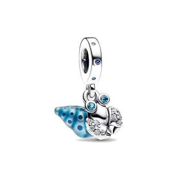 Charm Pendente Paguro che si illumina al buio è realizzato in Argento Sterling 925 e presenta un grazioso paguro con dettagli realistici e una conchiglia a spirale con smalto blu a pois applicato a mano che si illumina al buio. Pietre scintillanti sugli occhi, sulle chele e sull'anello passante donano luminosità al charm.