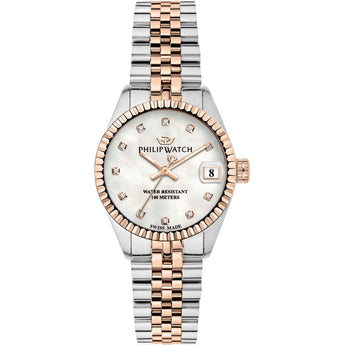 Scopri l'esclusivo Orologio Philip Watch Caribe - R8253597596 con diamanti naturali selezionati e cinturino in metallo rosa e silver. Il quadrante bianco madreperla e la cassa in acciaio inox con spessore di 9 mm rendono questo orologio ideale per un'esperienza urbana. Garanzia ufficiale di 2 anni e confezione originale Philip Watch inclusi.