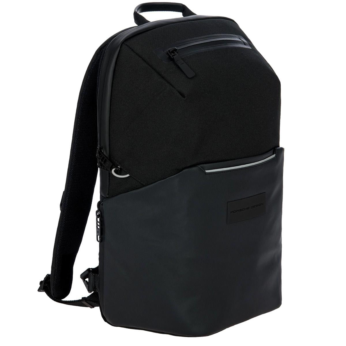 "Un connubio di stile e sostenibilità, funzionalità e flessibilità, lavoro e viaggio: la serie Porsche Design Urban Eco è fuori dagli schemi, ma è perfetta per la vita moderna di tutti i giorni. Lo zaino compatto Porsche Design Urban Eco XS conquista al primo sguardo grazie alla combinazione di poliestere impermeabile e tessuto rivestito e grazie al design pulito con chiusure lampo laminate e finiture in metallo nere. A un secondo sguardo, sono i dettagli a catturare l'attenzione: la toppa gommata con il logo, il bordino riflettente e la stampa ispirata al badge dei modelli Porsche con le coordinate di Zell am See, sede dello Studio F. A. Porsche. Il comfort invisibile dello zaino, attentamente progettato, è chiaramente percepibile da chiunque lo indossi. Le cinghie imbottite, lo schienale in neoprene imbottito con aggancio per trolley, la tasca principale con cerniera a doppio cursore, connettore USB e scomparti per notebook e tablet, le numerose tasche funzionali con organizer e la copertura antipioggia nascosta nella base rendono questo zaino il compagno perfetto 24 ore su 24.