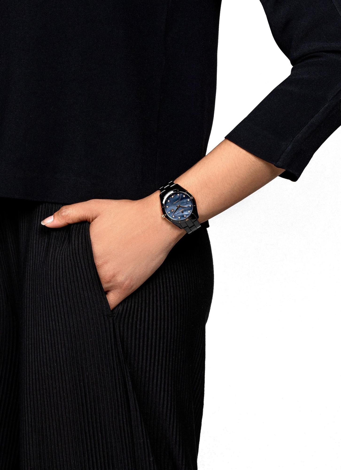 Orologio Rado da uomo Hiperchrome classic diamonds, cassa in ceramica hi-tech con un diametro di 36mm e uno spessore di 10,4mm. Il vetro è in zaffiro con rivestimento antiriflesso. La resistenza all'acqua è di 5 bar. Movimento automatico Swiss Made con funzione di orario e datario. La riserva di carica è di 80 ore. Bracciale in ceramica hi-tech.