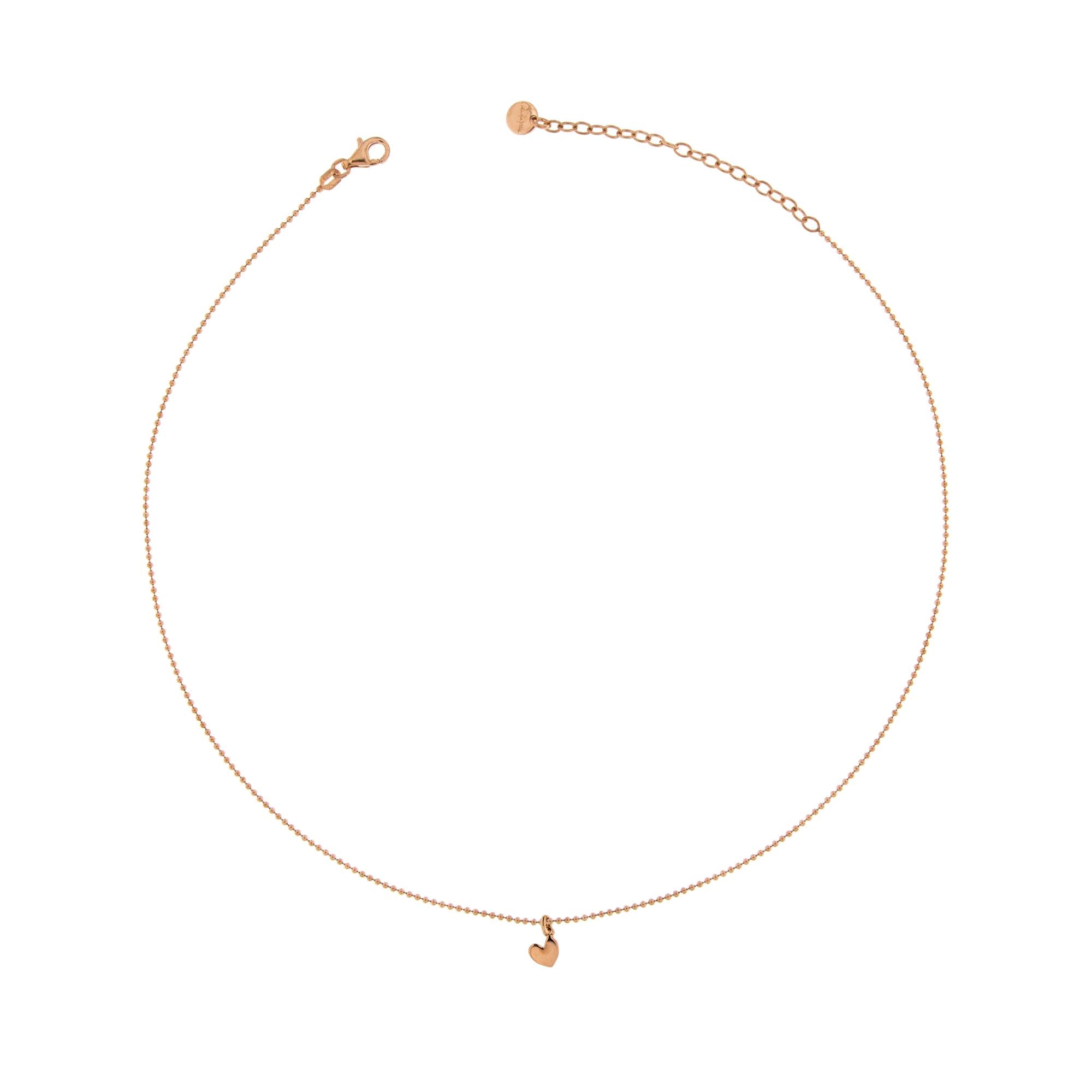 Girocollo in Argento dorato Oro Rosa con Catenella a pallini e mini Cuore bombato lucido, come centrale.