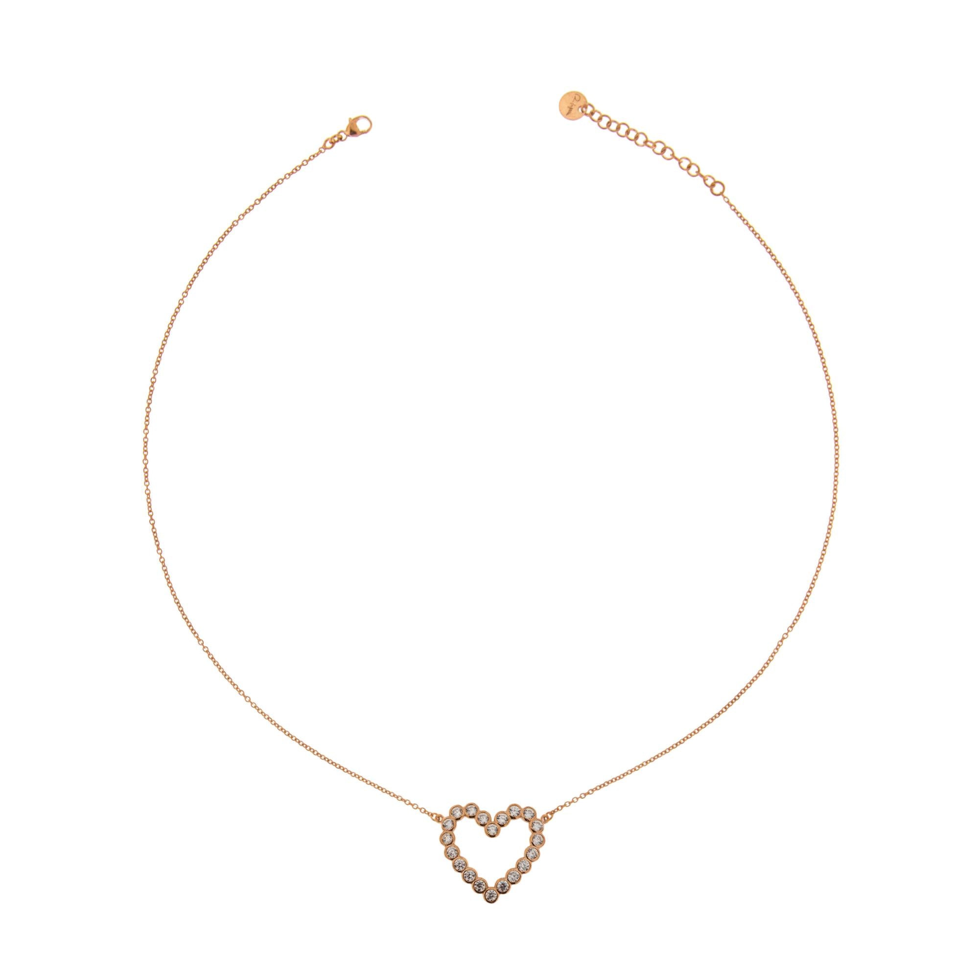 Girocollo a catena in Argento dorato colore oro rosa con al centro un Cuore formato da Zirconi montati su Castoni rotondi.