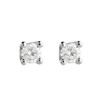 Orecchini punto luce Salvini Gioielli della collezione Virginia, realizzati in oro bianco 18 ct. e diamanti taglio brillante con una caratura di 0,18, colore G, purezza SI. La montatura è formata da 4 griffe rotonde che tengono il diamante.