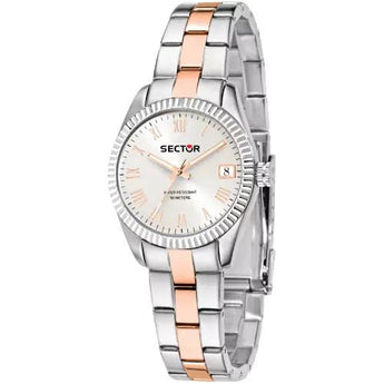 OROLOGIO SECTOR 240 - R3253579527 - Genere : Donna, Dimensione cassa: 31.5x38mm, Sector experience: Sport, Materiale e finitura cassa: Acciaio, Misura cassa: 31.5x38mm, Colore quadrante: Nero, Bianco, Sunray, Silver, Spessore cassa: 8,85, Vetro: Vetro minerale, Materiale: Acciaio Inox, Materiale cinturino: Bracciale in metallo, Colore cinturino: Argento e oro rosa, Chiusura: Folder buckle, Movimento: Quarzo, Water resistant: 5 atm, Garanzia: Ufficiale 2 anni Sector, Sostituzione batteria: Sì, Confezione: Originale Sector