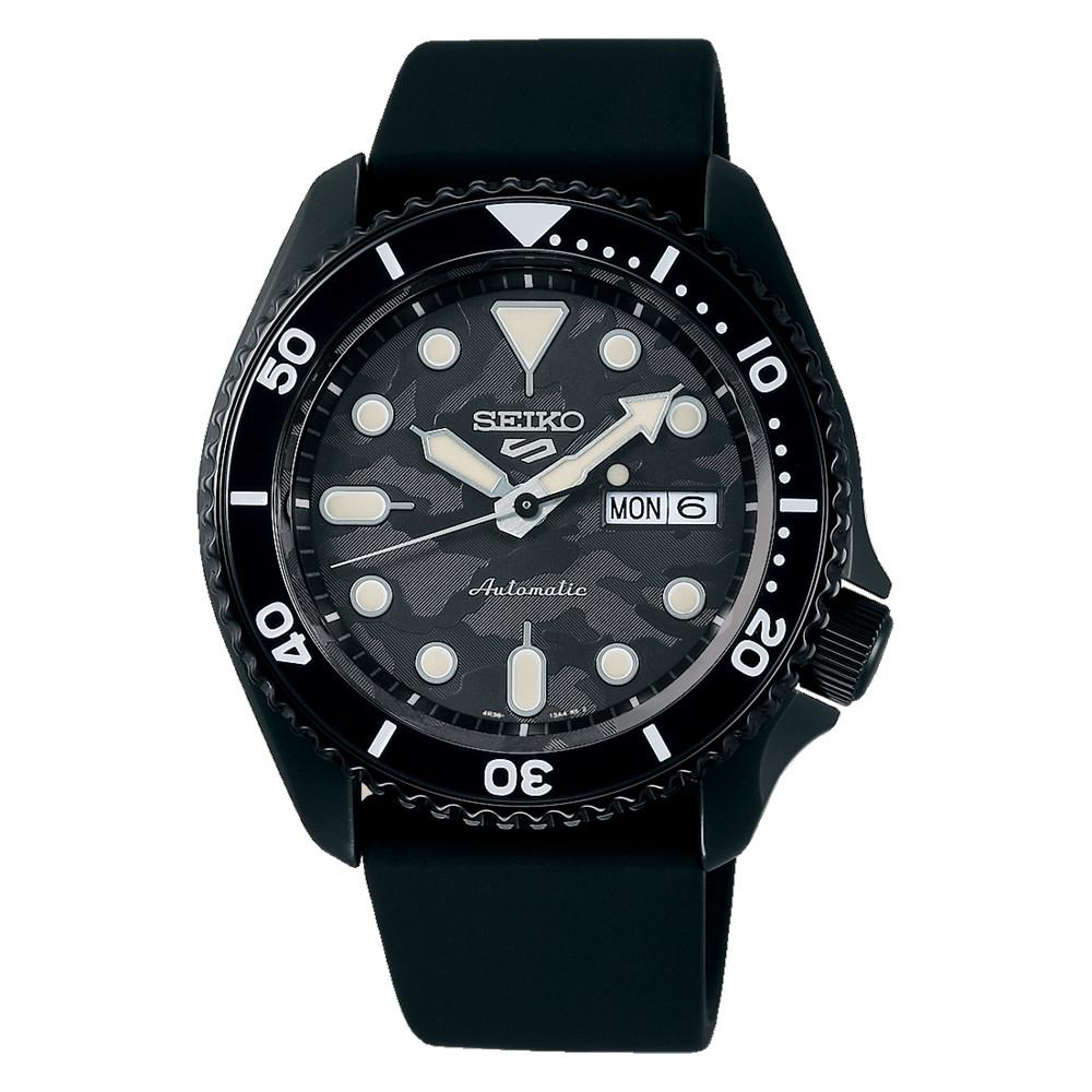 Orologio Seiko 5 Sport edizione limitata Yuto Horigome, cassa in acciaio inossidabile con un diametro di 42,5mm e rivestimento colore nero. Cinturino in silicone nero con fibbia ad ardiglione. La resistenza all'acqua è di 10 bar. Il meccanismo è automatico calibro 4R36 con una riserva di carica di 41 ore.