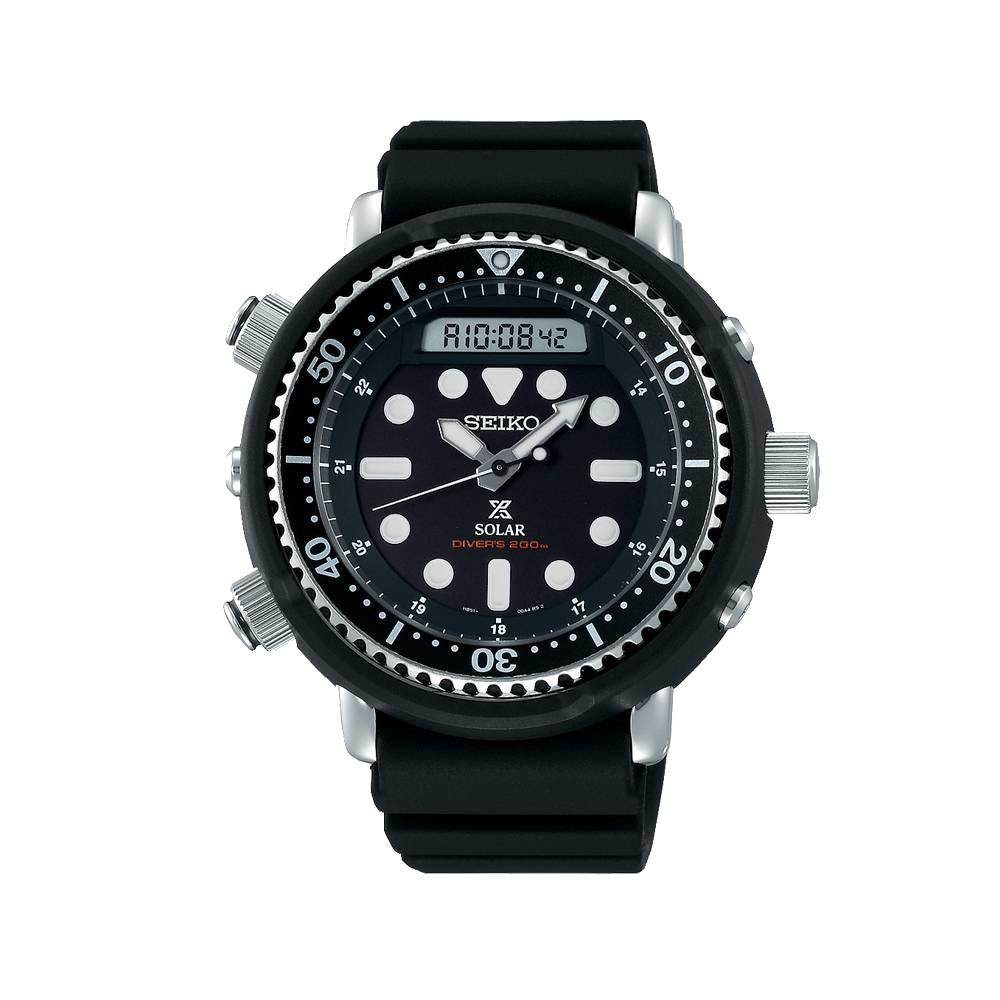L'orologio Seiko Prospex è un design unico con un doppio display analogico e digitale con un movimento al quarzo alimentato a carica solare. Impermeabile fino a 200 metri, questo modello PROSPEX include un cinturino in silicone per un comfort eccellente. Uno sguardo moderno ed elegante, l'orologio Seiko Prospex è un must per qualsiasi subacqueo.