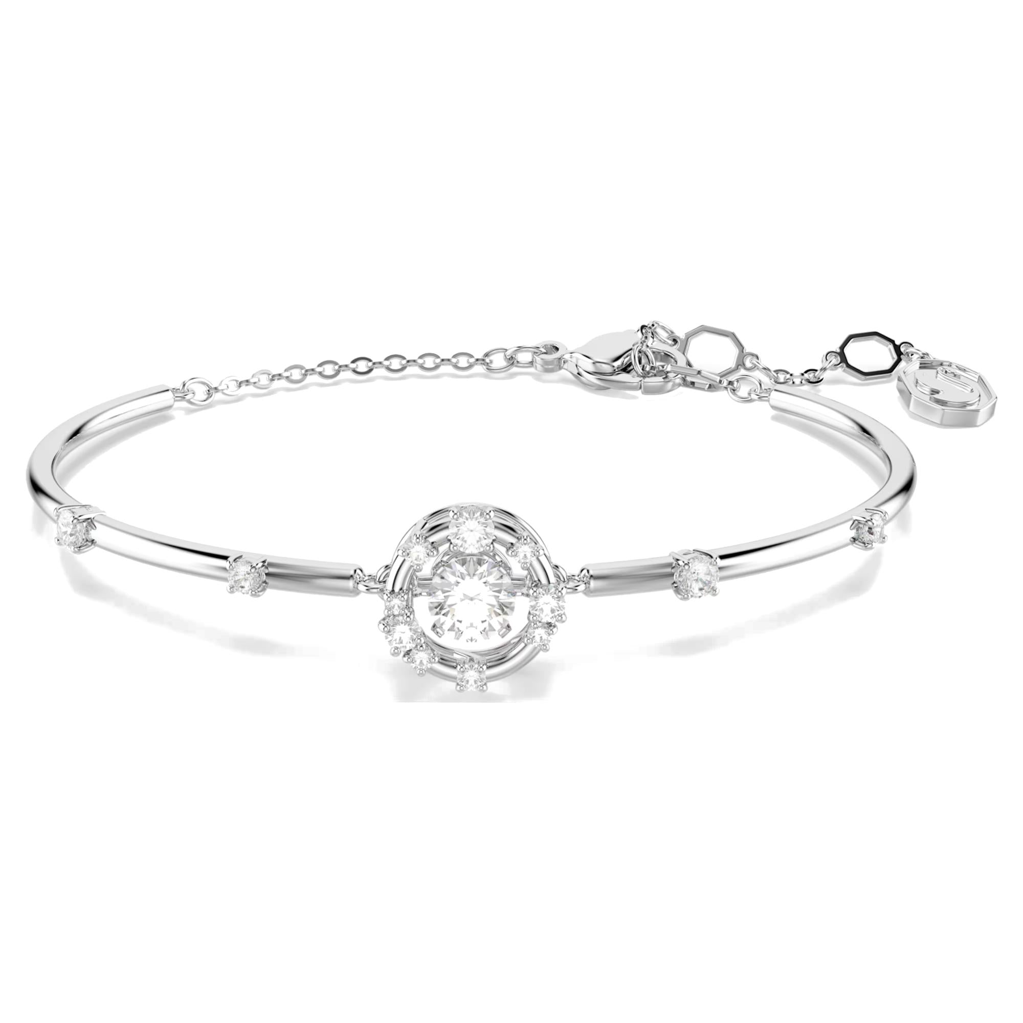 Bracciale rigido Constella Taglio Round, Dancing stone, Bianco, Placcato rodio