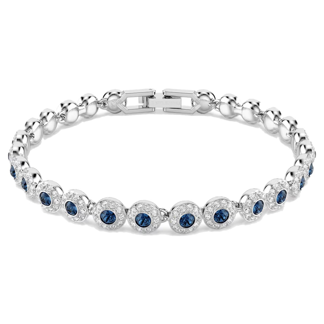 Bracciale Tennis Una Angelic Taglio Round, Blu, Placcato rodio