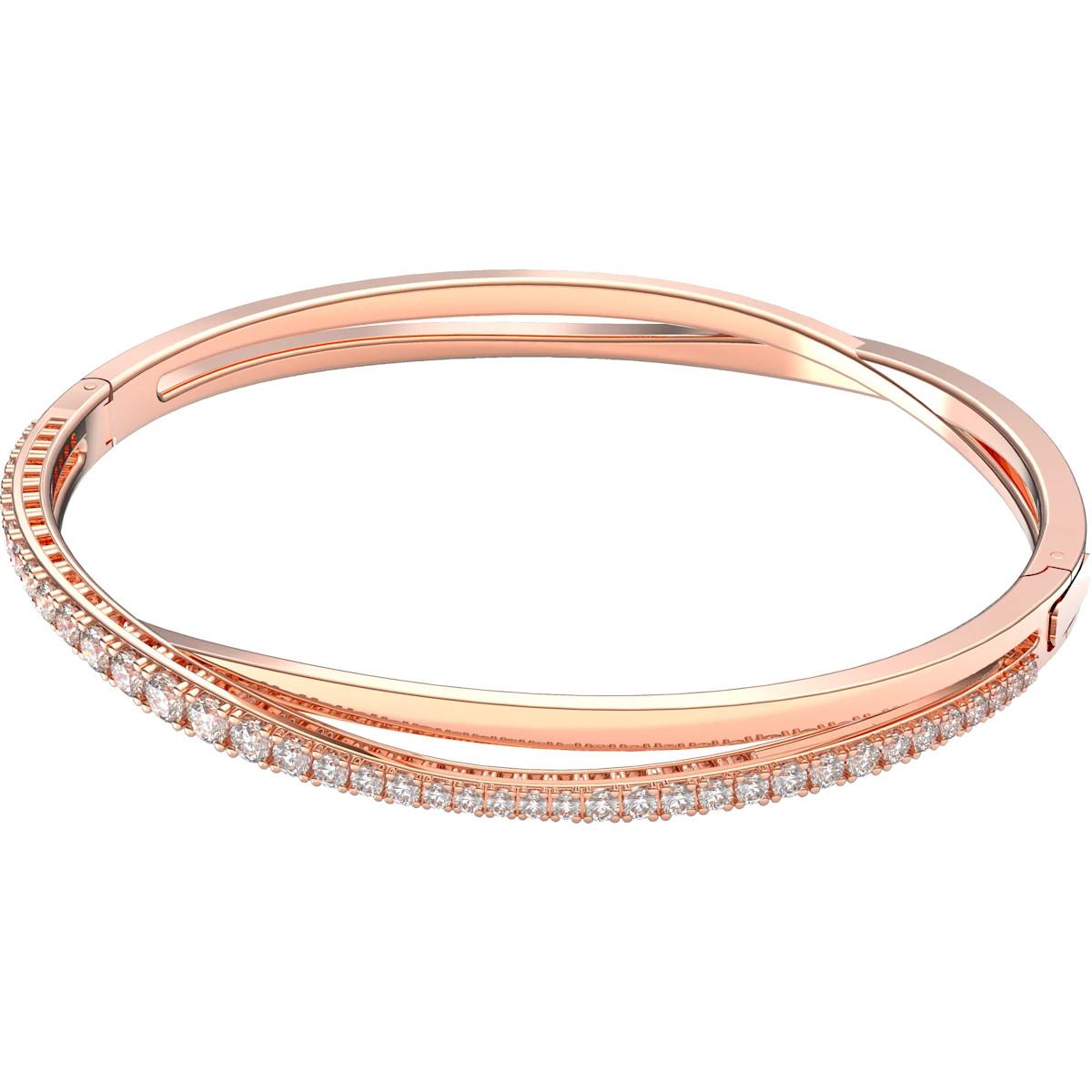 Bracciale Swarovski della collezione Twist, placcato in oro rosa e cristalli bianchi incastonati. Elegante e raffinato, questo bangle placcato in oro rosa completa il look di tutti i giorni con il suo tocco brillante di eleganza senza tempo. Caratterizzato da una linea sinuosa di metallo lucido che gira intorno ad un'altra impreziosita da pietre bianche e luminose, è una moderna interpretazione del lusso classico. Una deliziosa idea regalo.