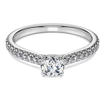 Ogni dettaglio di questo radioso anello Eternity è stato realizzato per catturare la luce. Il design in oro bianco da 18 K è impreziosito da piccoli diamanti creati in laboratorio, mentre un diamante rotondo, anch'esso creato in laboratorio e montato a griffe è incastonato al loro centro l'insieme delle pietre totalizzando 0,7 carati. Un gioiello splendido ed elegante, che sarà una scelta sensazionale per un fidanzamento. Certificato IGI (International Gemological Institute), questo gioiello è parte della collezione Eternity.