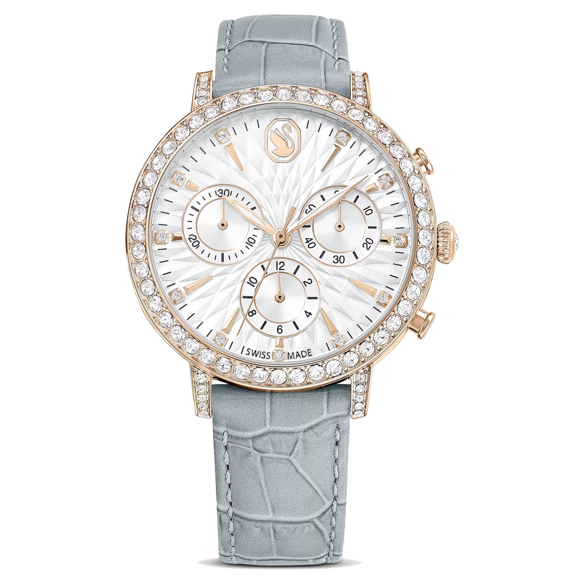 Orologio Matrix Tennis Chrono Fabbricato in Svizzera, Cinturino in pelle, Grigio, Finitura in tonalità champagne dorato