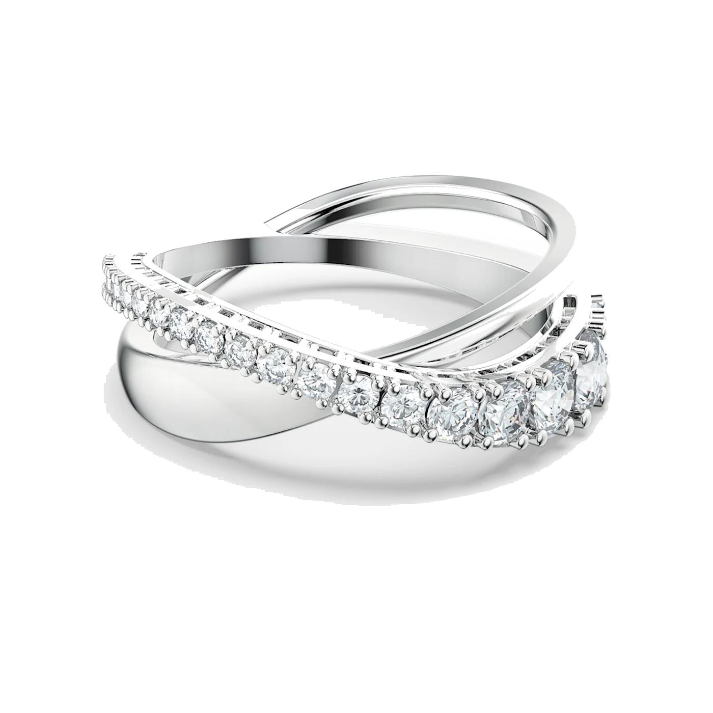 Anello Swarovski Twist Rows Bianco, Placcato rodio (misura 50)